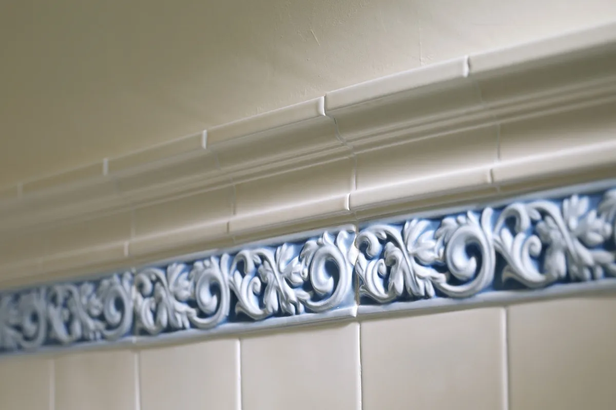 В коллекцию Essenze Ceramica Grazia также вошли декоративные элементы, выполненные «под лепнину». Это вставки и бордюры с красивым объемным узором, стилизованные под ручную работу.