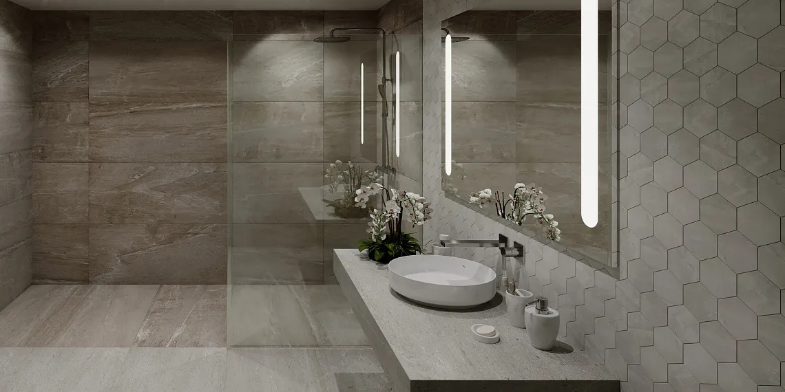 Интерьер с применением плитки Кайлас Аметис бай Эстима несомненно станет четким акцентом на натуральность и сдержанность.