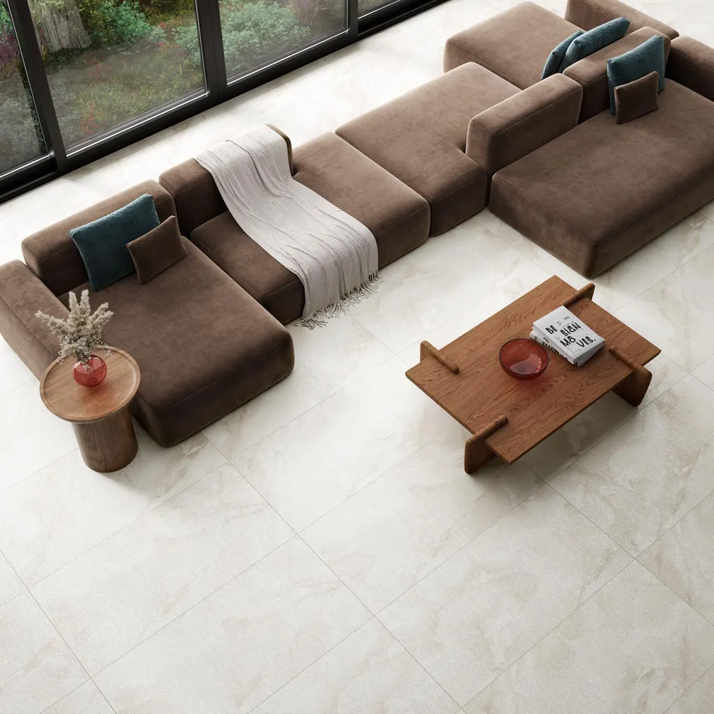 Коллекция керамогранита Lustre от Gravita представлена в формате 60×120 см и выполнена в классических серо‑бежевых тонах с текстурой под натуральный оникс. Поверхность имеет мерцающее покрытие (sugar‑эффект), придающее деликатное сияние.