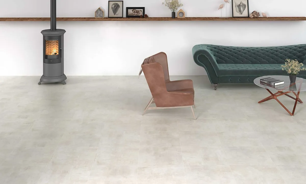 Цементный внешний вид плитки Отава Ундефаса доступный в четырех оттенках серого.