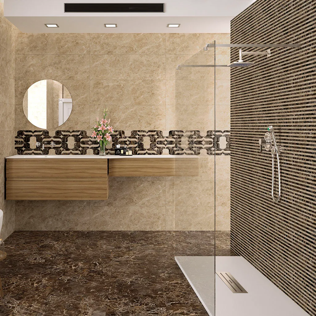 Шикарная коллекция под популярный и невероятно красивый мрамор имперадор в двух его классических расцветках: Dark и Light. Мрамор насыщенного коричневого цвета с неповторимым рисунком светлых прожилок по всей поверхности отлично сочетается с теплой гаммой нежно-бежевого варианта. Два вида декором помогут разделить пространство и создать акцентные ноты в интерьере.
