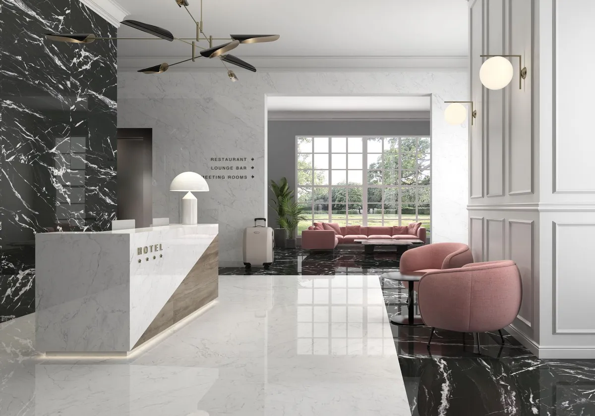 Коллекция Загреб из керамического гранита под мрамор с полированной поверхностью. Ректифицированный край (обрезной) позволяет делать укладку плитки с минимальным швом, что придает интерьеру максимальную монолитность и неразделимость.